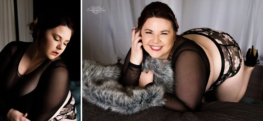 But for me, my mission for doing this was finding beauty in my body. Finding beauty where I am in my life and where I am with my weight loss and my goals. And looking at my photos, every single photo she had, I looked at the smile on my face or the way my hair looked, or the freckles you could see in the black and white photos, and I looked at her at one point and said "for me this is amazing, because every single photo I take, I always nitpick. I narrow in on my stomach looking too big, or my boobs being out, or my arm fat." I never once did that in any of the photos she took for me. And that, for me, was amazing. That's why I want every girl who wants to find beauty in themselves to do this. They deserve the same feeling and it truly changes the way you look at yourself!