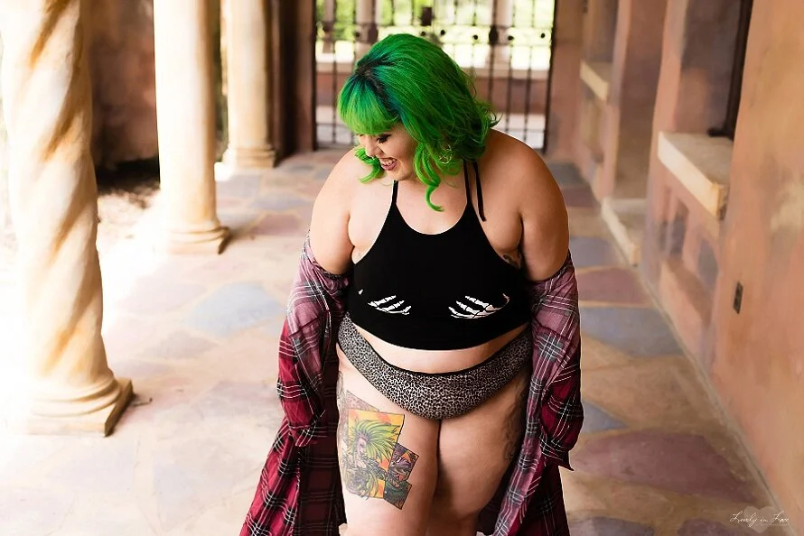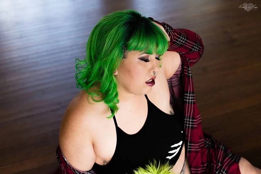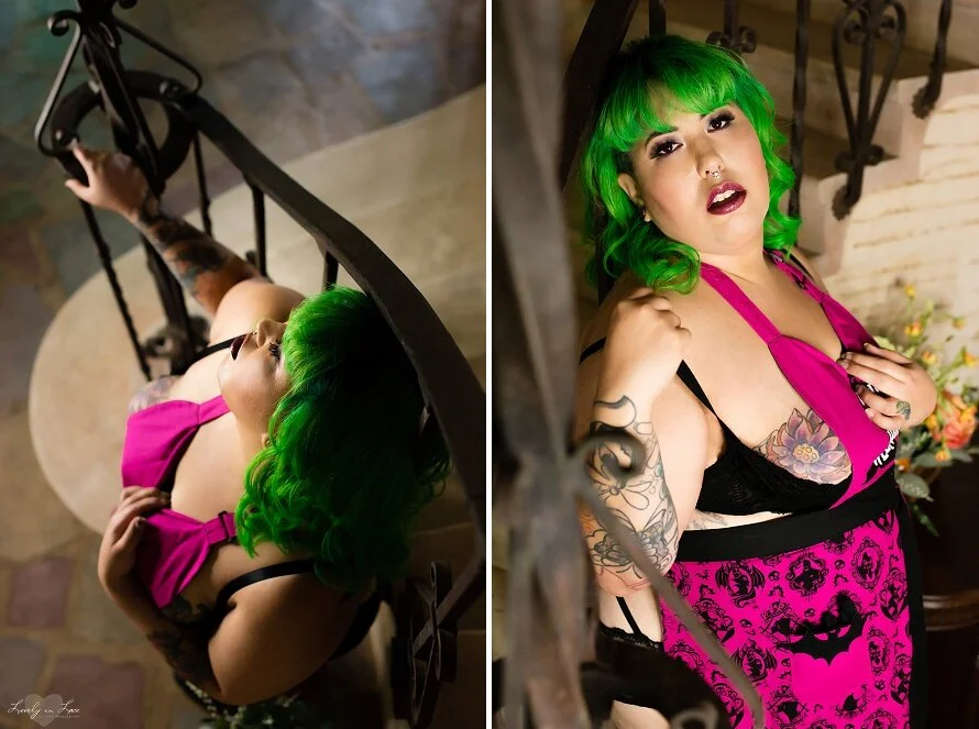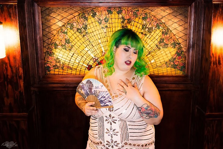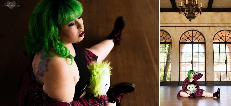 And of course, our Green Haired Goddess was no exception. This being her 3rd session with Lovely in Lace, we were so excited to explore the different rooms of the mansion, including a underground liquor cellar that was used for storing liquor during the 1920’s prohibition! Also you may find a little cameo from another green haired friend, just don’t call his name too many times!